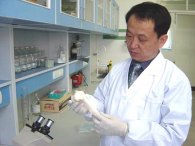李寶興和同事們反復(fù)試驗,尋找臨床試用出現(xiàn)不良癥狀的原因,結(jié)果發(fā)現(xiàn),主要是因為原材料中的蛋白質(zhì)等的留存度過高。找到問題就可以對癥下藥了,怎樣才能使這些物質(zhì)的留存度最少呢?清洗是核心技術(shù),怎樣洗、洗幾遍才能洗干凈而不會損壞原有材料的骨結(jié)構(gòu)?李寶興和同事們反復(fù)試驗,反復(fù)清洗,終于掌握了一套不同時長、不同水流清洗的技術(shù)。
